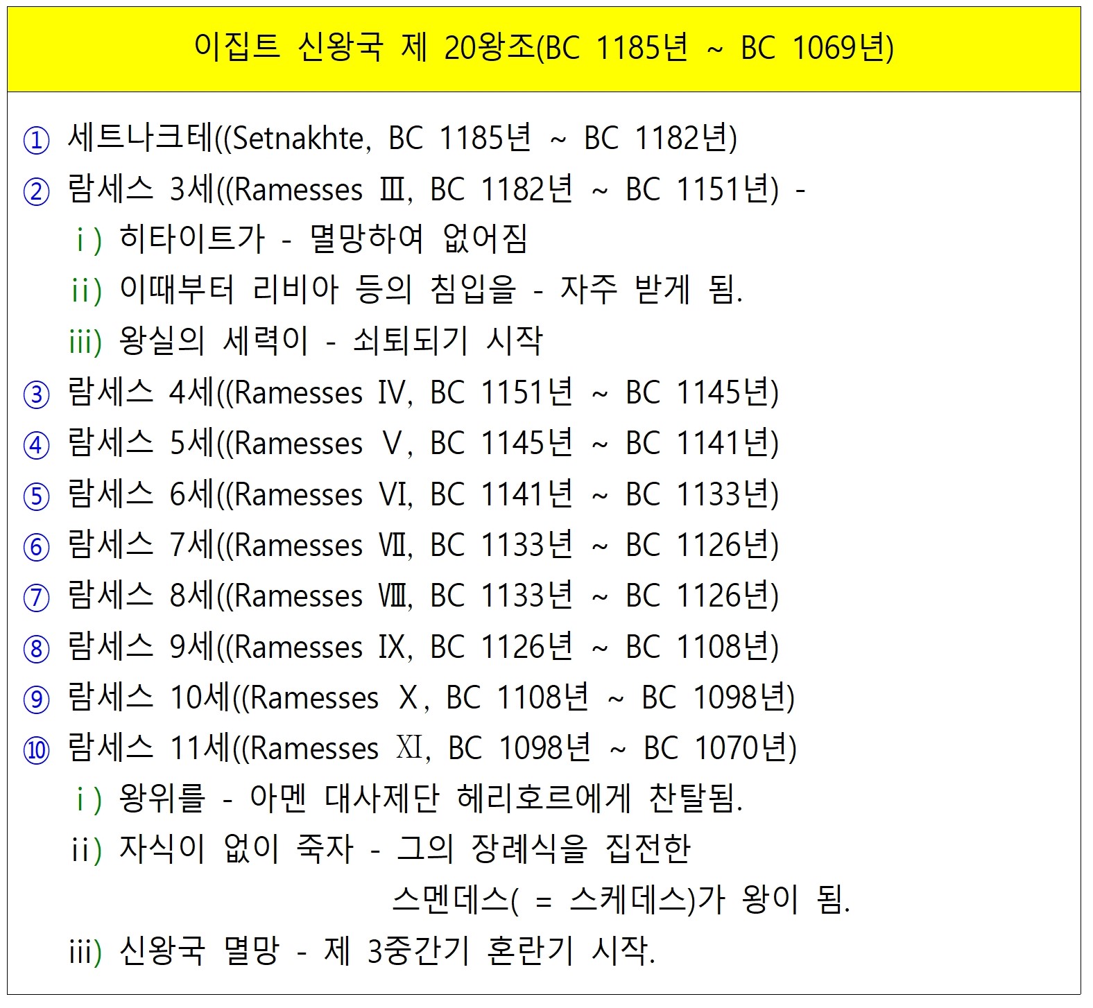 ② 신왕국 20 왕조 람세스 11세가 - 자식이 없이 죽음.